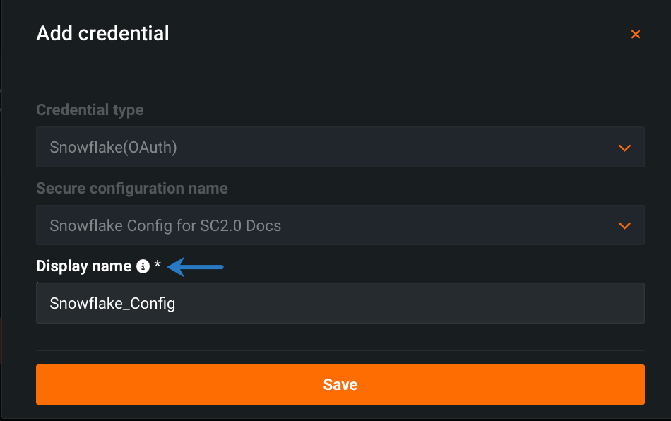 3. In the Add credential modal, enter a unique name for your credentials under Display name.