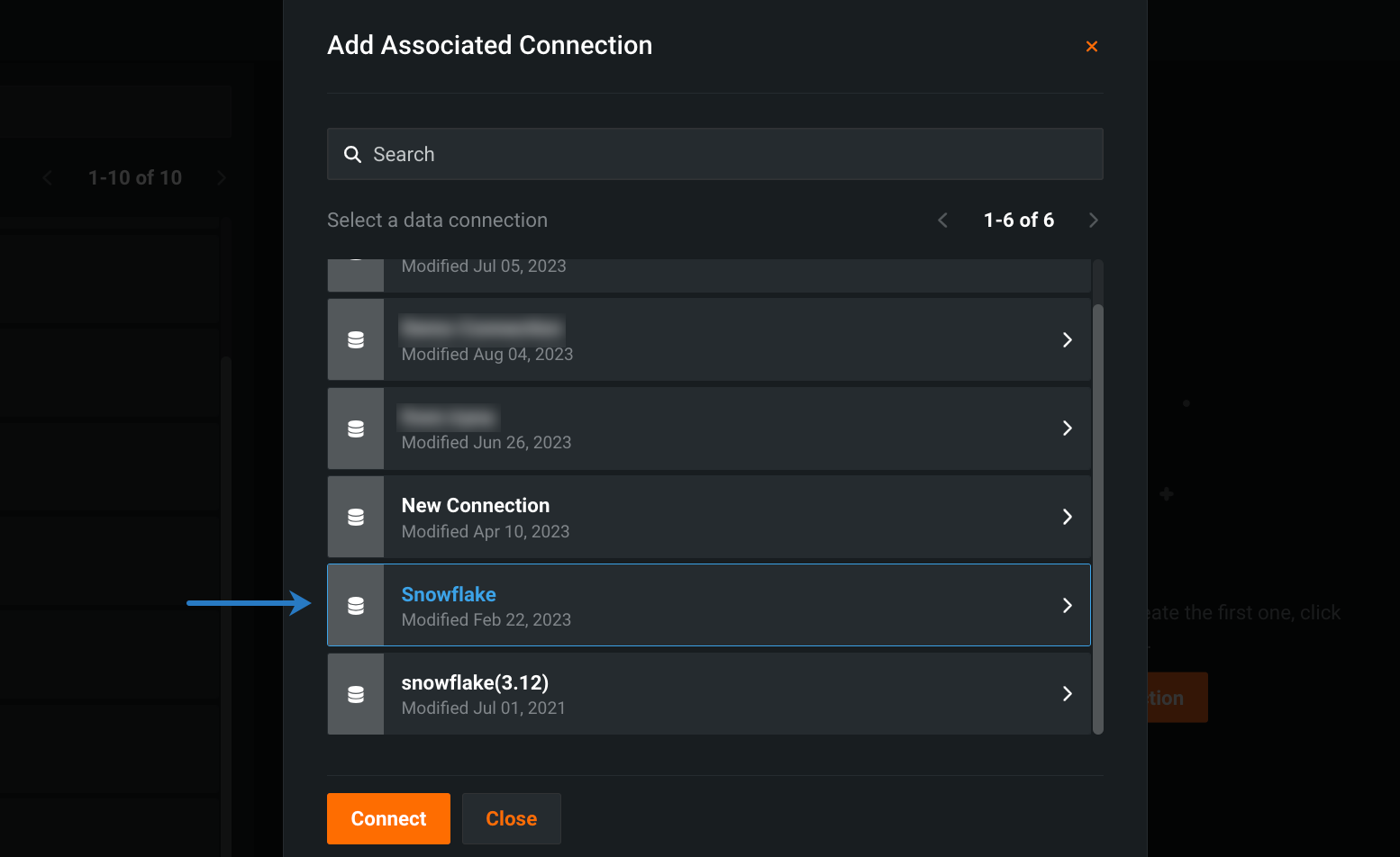 6. Select the data connection you want to associate with your secure configuration and click Connect.