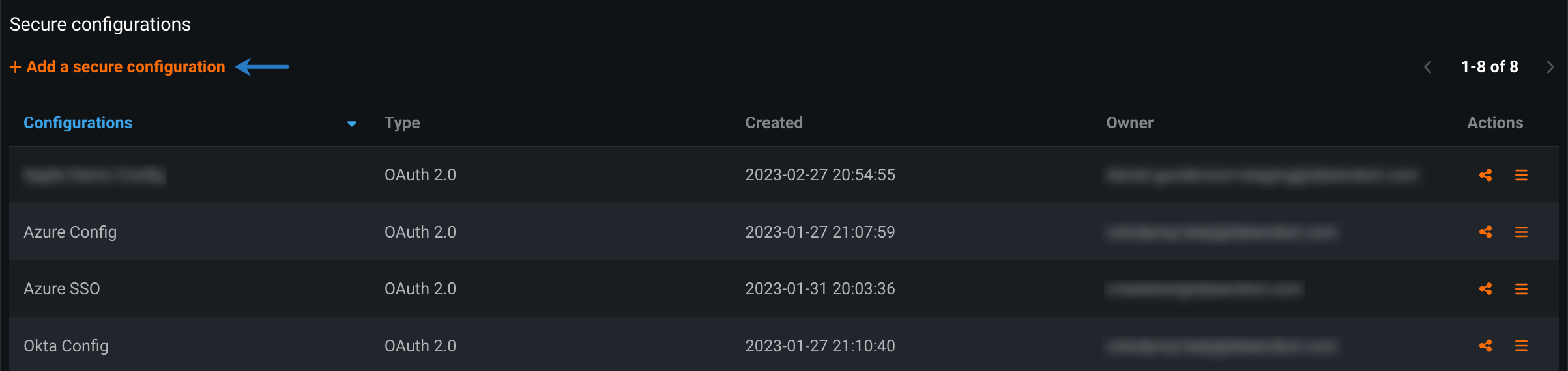 Other users cannot access a secure configuration when setting up a data connection until it's been shared with them.