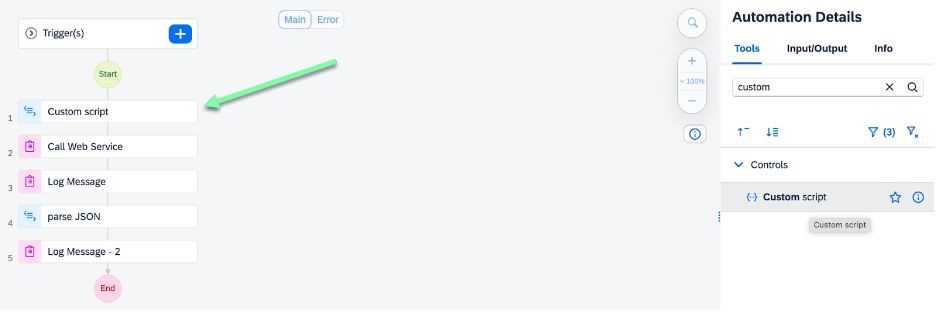 To connect your DataRobot deployments to SAP Build Process Automation, use the Custom Script function in Build Process Automation.