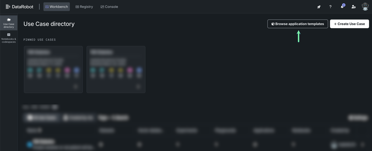 From Workbench, in the Use Case directory, click Browse application templates.