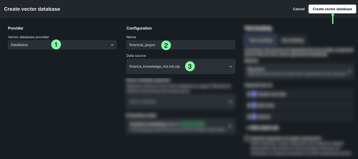 For the rest of the fields (blurred in the above image), use the default settings. Then, click Create vector database. Note that building the vector database may take a minute or two.