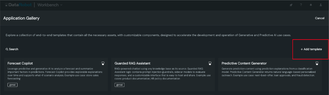 Below are two methods for adding templates to the Gallery, allowing users to discover them easily in the product experience: via terminal or via UI.