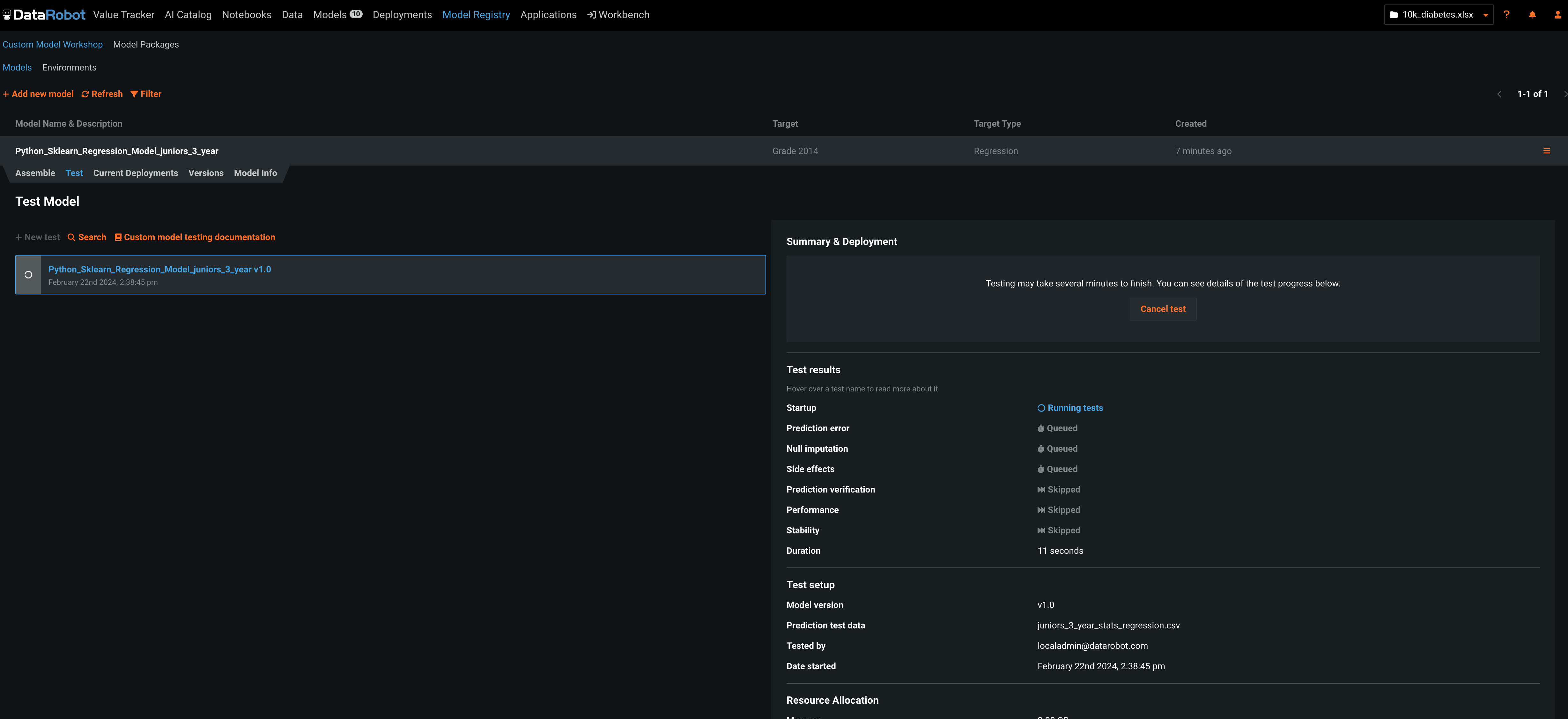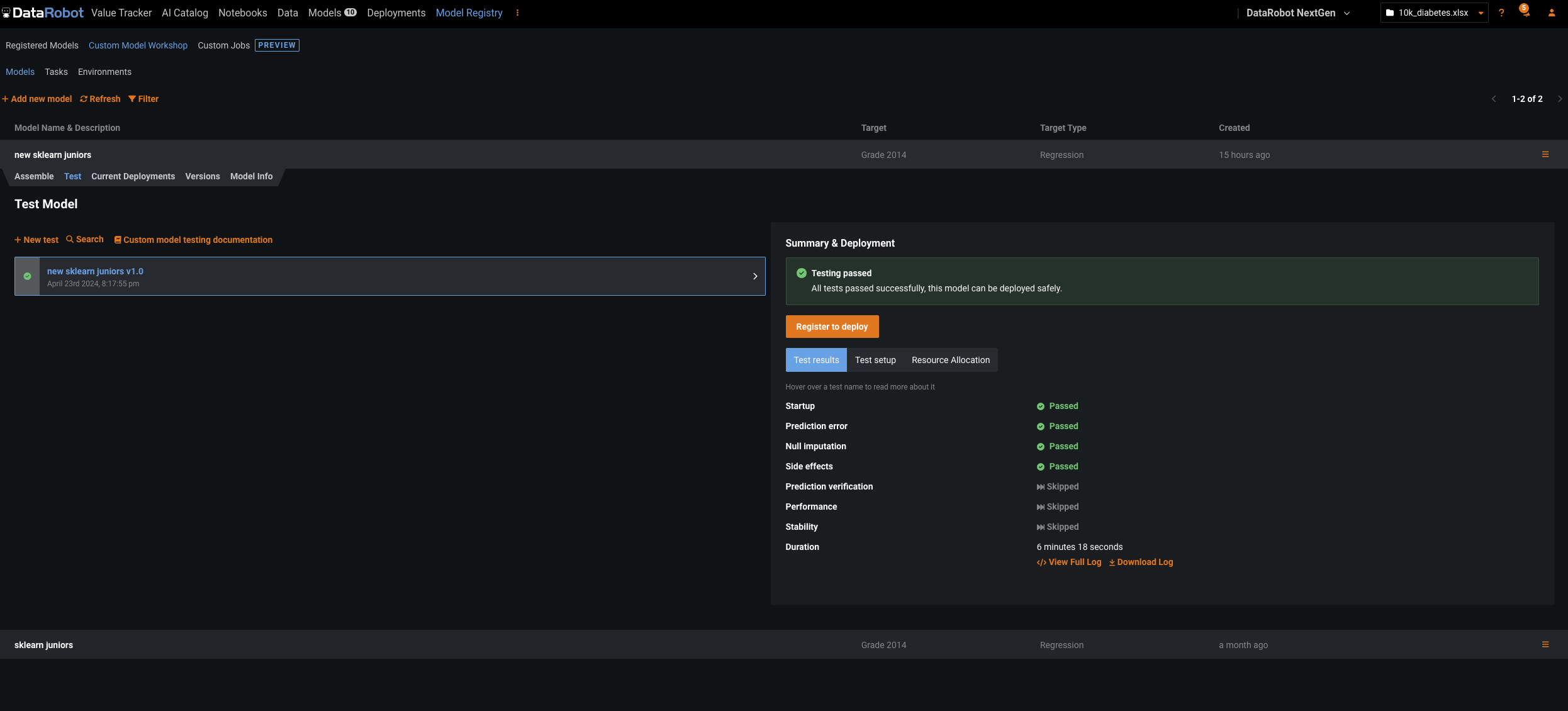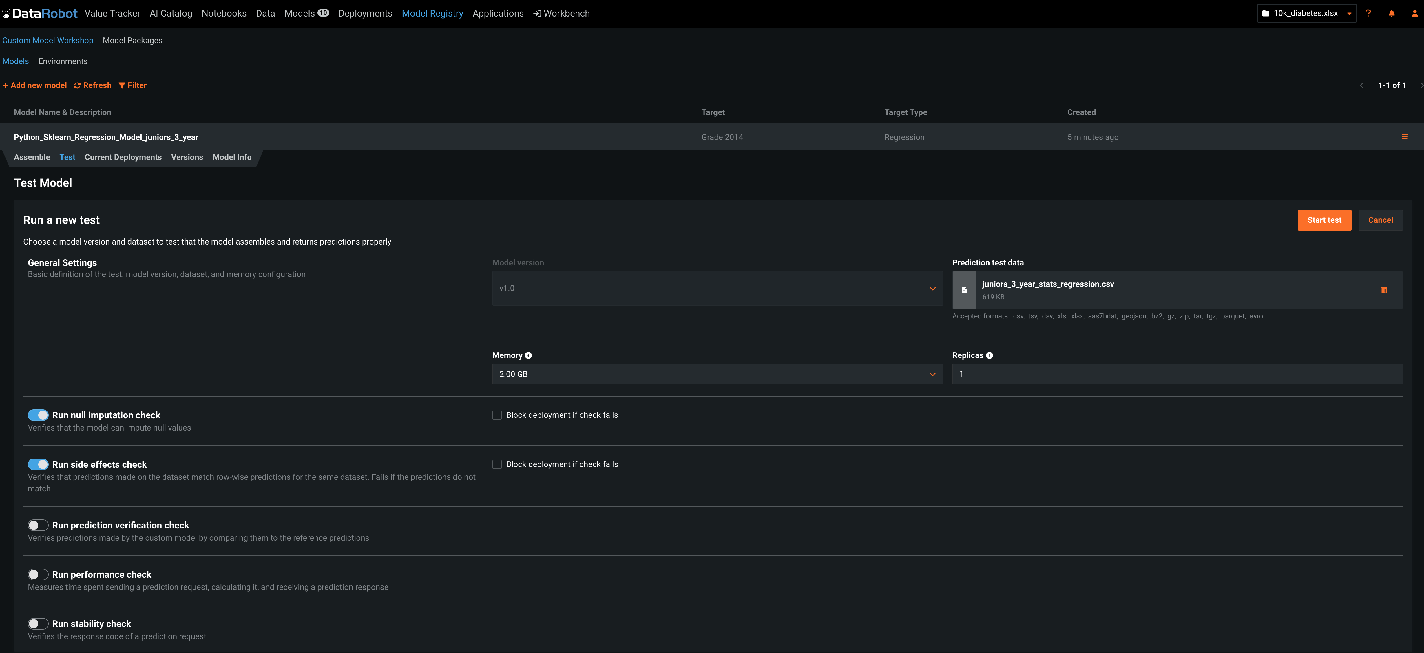 This guide walks you through the process of creating and verifying a custom model in DataRobot, from creating the environment to testing the final deployment.