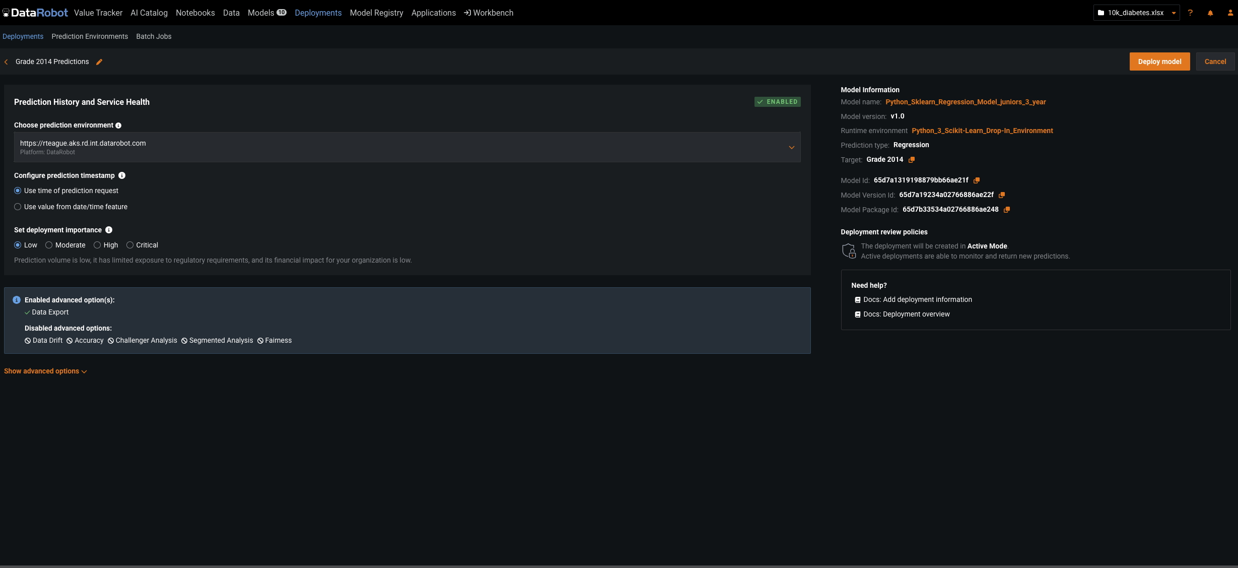 juniors_3_year_stats_regression.csvfile again or select it from the AI Catalog. e. When the dataset is loaded, click Compute and Download Predictions.