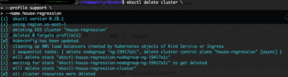 eksctl delete cluster --name house-regression