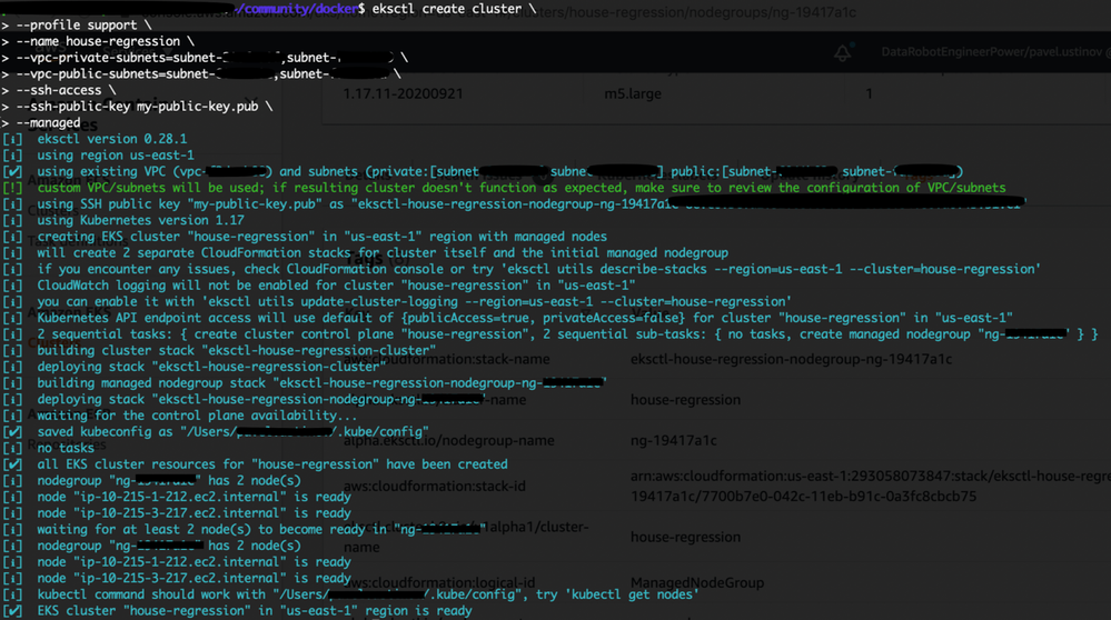 eksctl create cluster \ --name house-regression \ --ssh-access \ --ssh-public-key my-public-key.pub \ --managedNotes