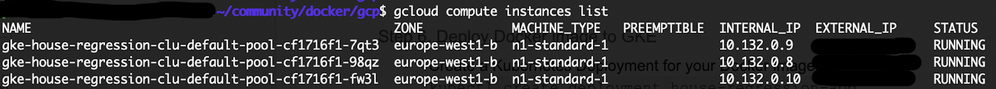 gcloud container clusters create house-regression-clusterThis command finishes as follows: