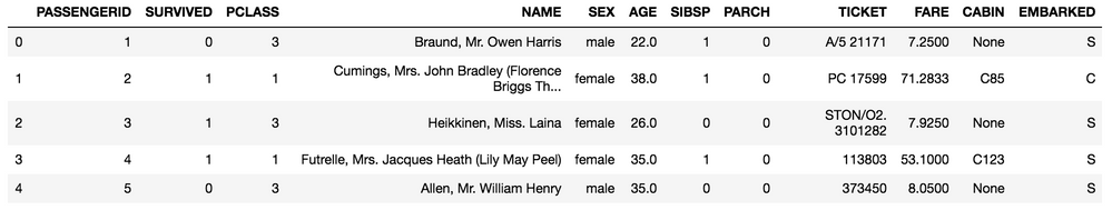 Below, the training dataset is loaded into the table TITANIC.PUBLIC.PASSENGERS_TRAINING and then retrieved and brought into a pandas DataFrame.