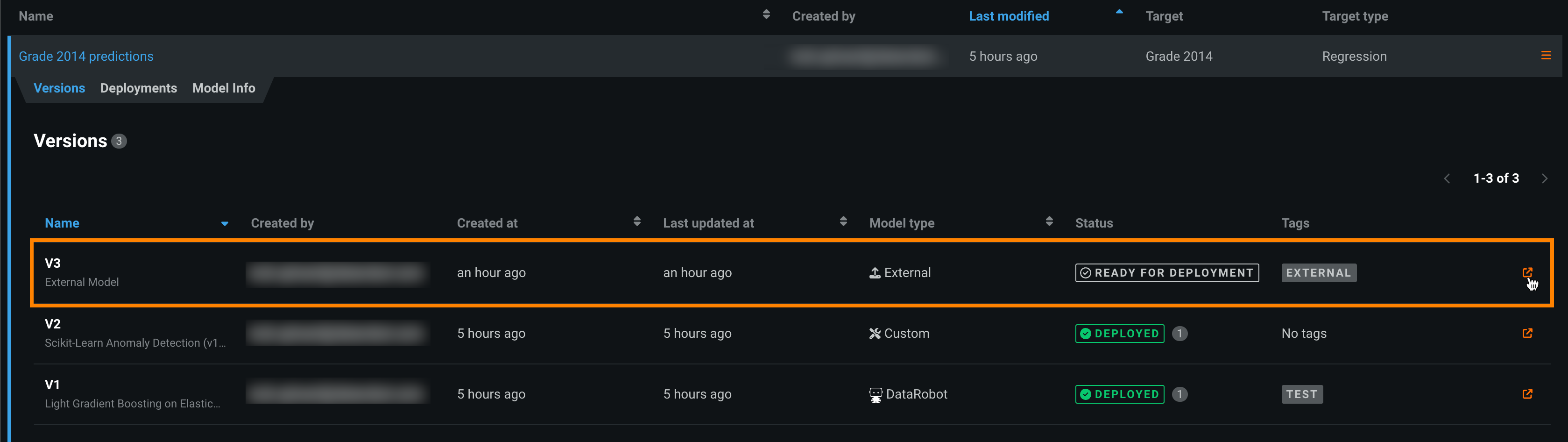 1. On the Registered Models page, click the registered external model containing the model version you want to deploy.