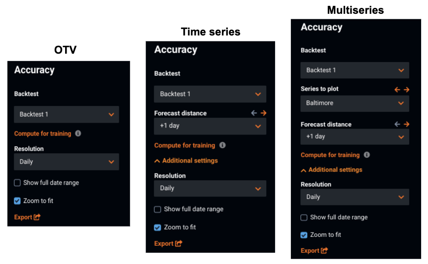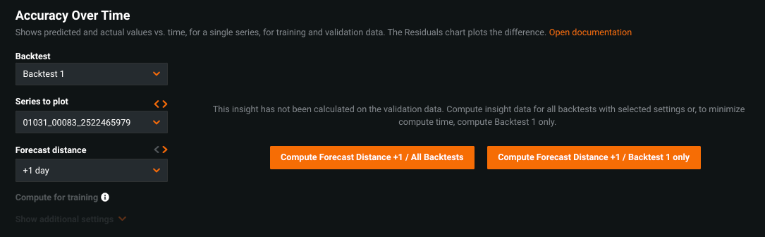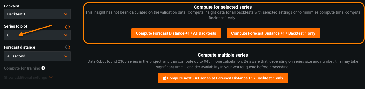 Compute Forecast Distance X / Backtest X Computes insight data for the selected series, but only for the selected backtest at the selected forecast distance.