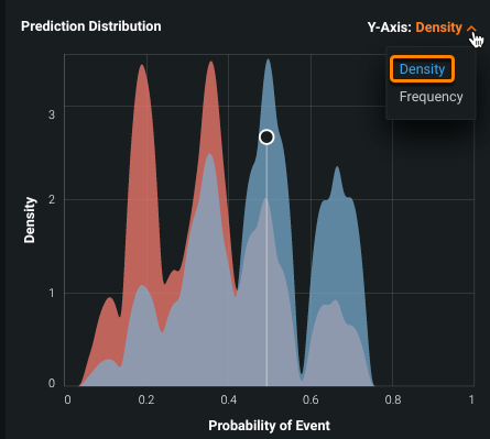 4. Select one of the following from the Y-Axis dropdown. The Y-Axis distribution selector allows you to choose between showing the Prediction Distribution graph as a density or frequency curve: