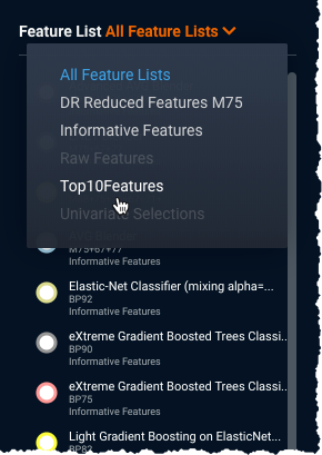 When you select an alternate feature list, DataRobot displays, for the selected feature list: