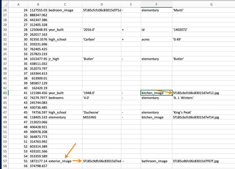 Open the CSV and notice that for image features that are part of the explanation, the image file name is listed as the feature's value.