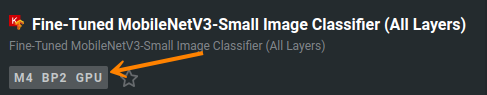 Once a models's training is complete, it appears on the Leaderboard. A badge indicates whether the model was trained on GPUs.