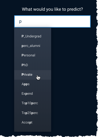 Enter the name of the target feature you would like to predict. DataRobot lists matching features as you type: