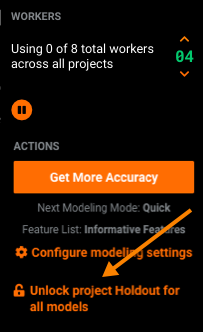 You should only unlock your holdout data after having made all your model-related decisions. Once your project's holdout has been unlocked, it cannot be re-locked.