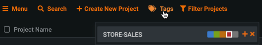 The new tag displays next to the project name in the project list. To remove tags, select Tags and select the trash can icon (