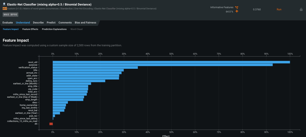 For models trained from customized blueprints, Feature Impact is always computed using the permutation-based approach, regardless of the project settings.