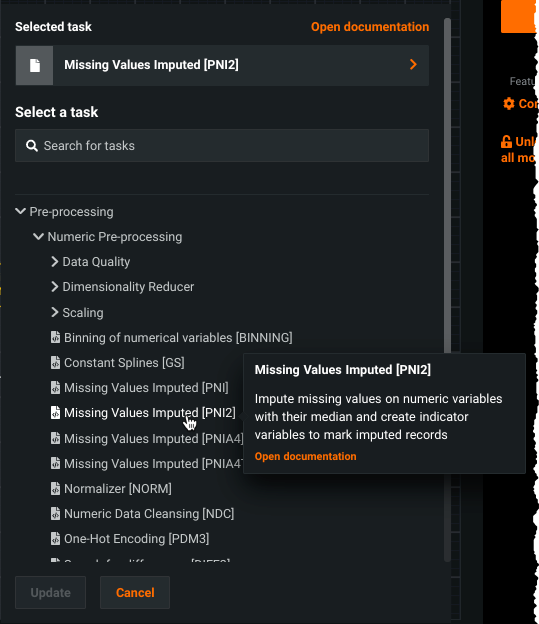 Select the Missing Values Imputed or Numeric Data Cleansing task and click the pencil (