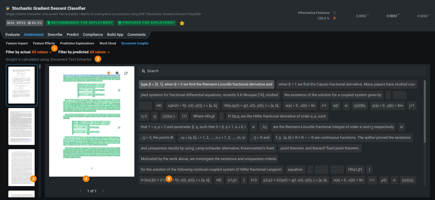 | 3 | High-level page preview | Scroll through or select the PDF documents that are used in the model. Click an entry to change the middle and right columns to reflect that text. |