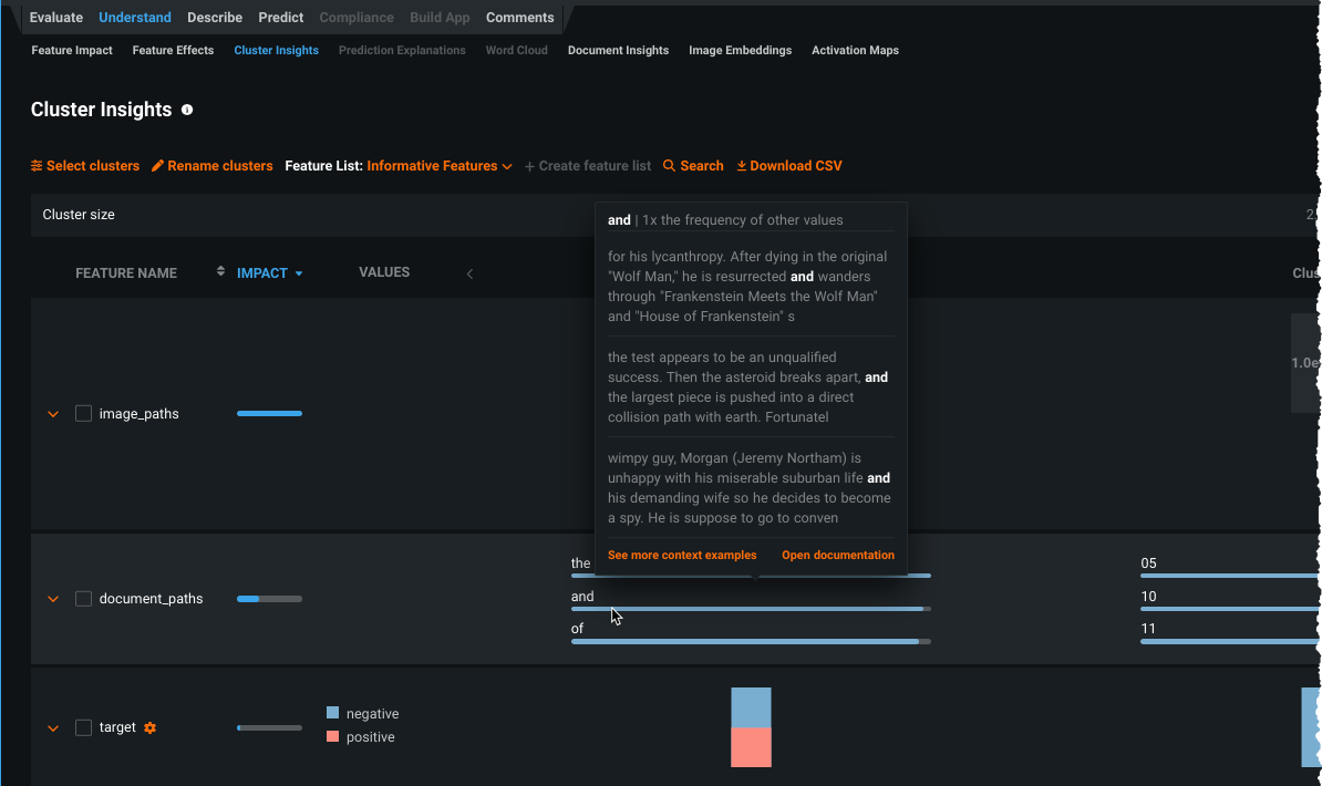 | Document Insights | Understand how DataRobot processed document features for modeling. |