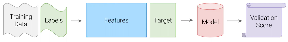 In conventional supervised learning, you work with raw training data—with labels or features. DataRobot trains models to predict a specified target based on those features. DataRobot creates a model, tunes it, and then tests it on unseen (out-of-sample) data. That test results in a validation score which can be considered a measure of confidence in how ready the model is for deployment. Once deployed, you can score new data with the model. Feed the new data into DataRobot, where the application extracts features from the data and feeds them into the model. The model then makes predictions on those features to provide information about the target.
