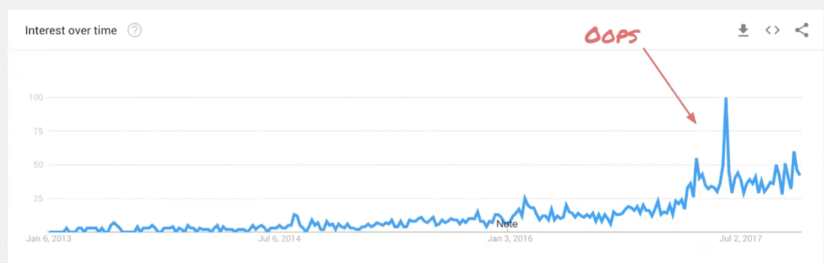 With time-dependent data, the traditional machine-learning assumptions don't work. Consider Google search trends for the term "DataRobot" in the period of July through November, 2017. The search interest is fairly uniform: