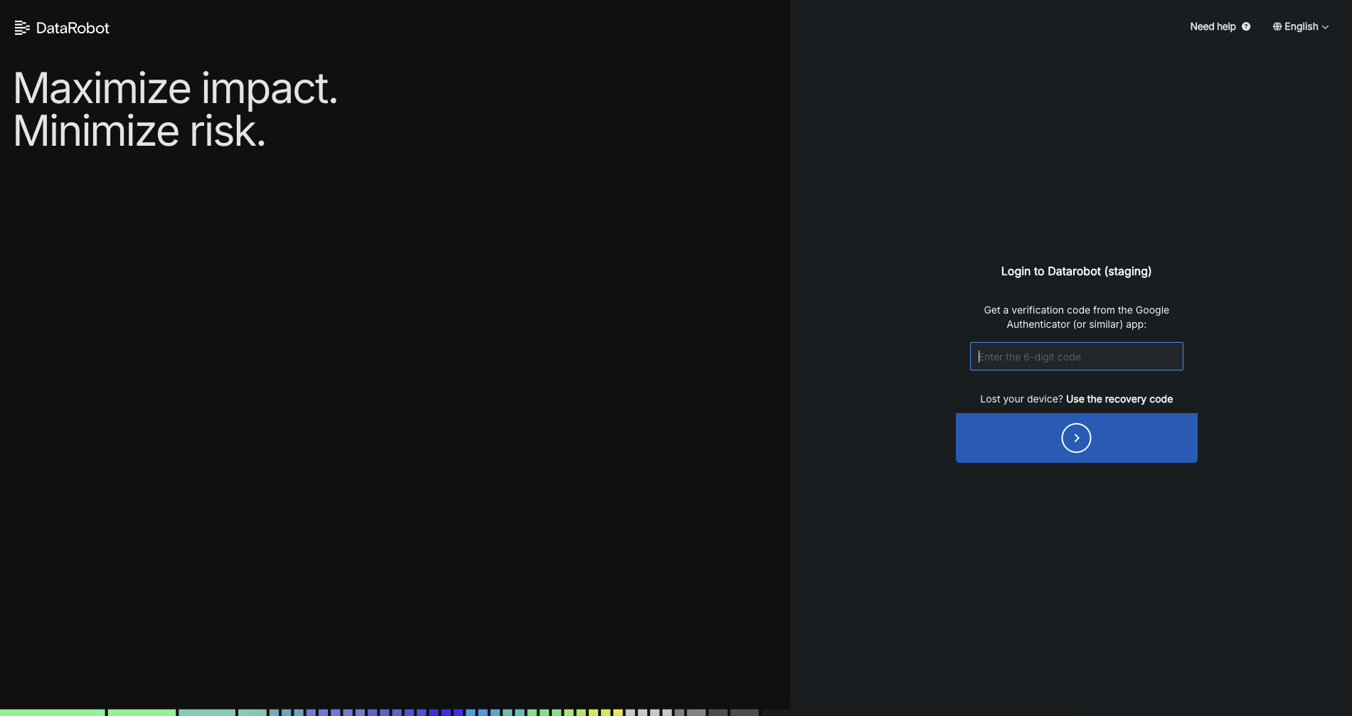 | I lost my codes | If you lose access to your phone and recovery codes, contact your administrator or DataRobot Support. | N/A |