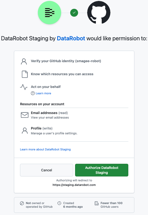| GitHub | Github application | DATAROBOT_BASE_URL/account/oauth-providers/?providerId=PROVIDER_ID |