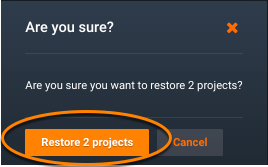 Click to restore the project(s). Restored projects will be immediately available, to the owner and to anyone sharing the project.