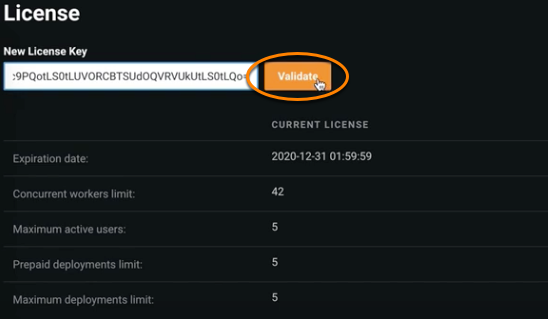 Copy the license key you receive from Support, paste it to the License Key field, and click Validate.