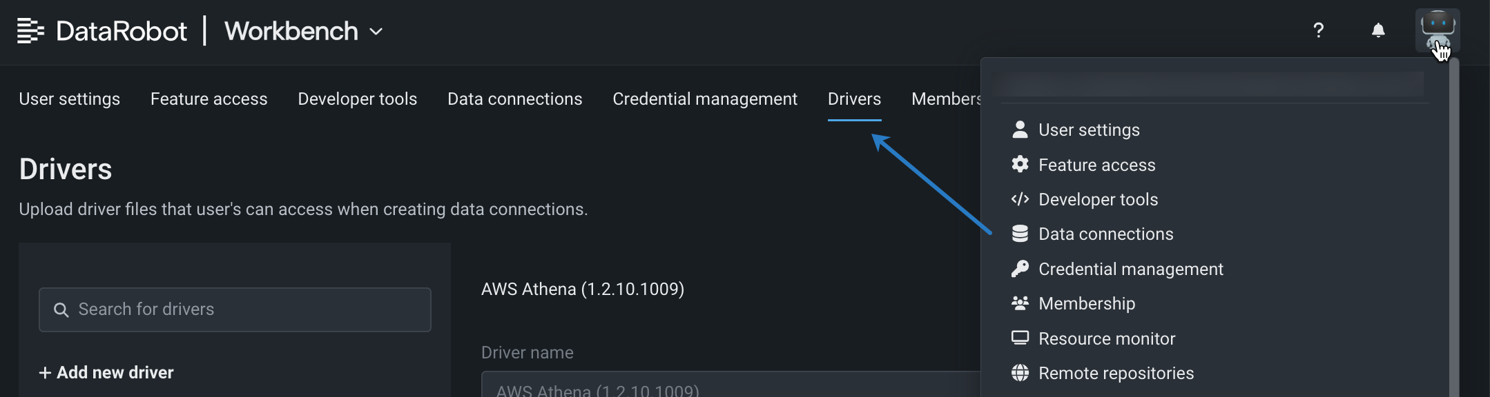 A driver allows DataRobot to provide a way for users to ingest data from a database via JDBC. The administrator can upload JDBC driver files (JAR files) for their organization's users to access when creating data connections. As part of driver creation, the administrator can also upload additional JAR files containing library dependencies. Once uploaded, drivers can be modified or deleted only by administrators.