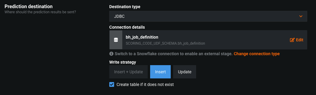 | 5 | Prediction destination | Indicate the output destination for predictions. Set the destination type and define the connection. |