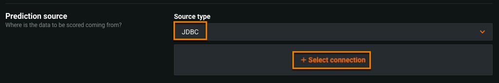 For Prediction source, select JDBC as the Source type and click + Select connection.