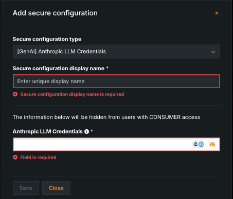| Secure configuration type | [GenAI] Anthropic LLM Credentials |