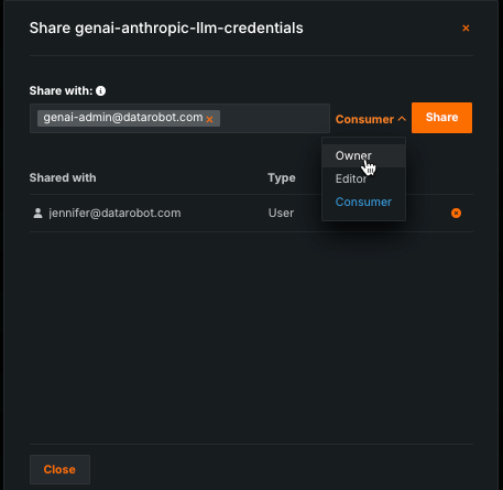 genai-admin@datarobot.com). This user is automatically created during installation. You must assign either the Owner or Editor role to the admin.