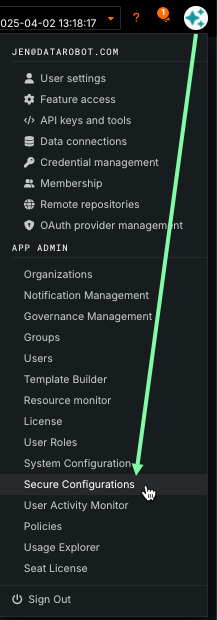 After installation is complete, provide model credentials to DataRobot from the Secure Configuration page: