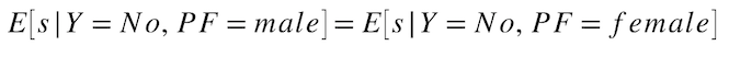 d: decision of the model (i.e.,YesorNo)PF: protected features: predicted probability scoresY: target variable