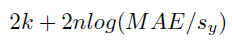 where log is the natural logarithm, sy is the standard deviation of the target variable, MAE is the mean of the absolute value of the residuals: