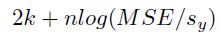 and k is the number of parameters in the model (including terms with a coefficient of 1).
