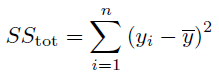 SStot is proportional to the total variance, and SSres is the residual sum of squares (proportional to the unexplained variance).