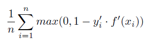 With this calculation, when the prediction f(xi) and actual yi have the same sign (a correct prediction) and the predicted value >= 1, the error is considered 0, while when they have a different sign (an incorrect prediction), the error increases linearly with f(xi).