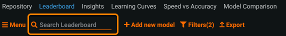 In addition to the Filter method, the Leaderboard provides a method to further limit the display to only those models matching your search criteria.