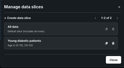 A bank is building a model to predict loan default risk and wants to understand if there are segments of their data— demographic information, location, etc.—that their model performs either more or less accurately on. If they find that "slicing" the data shows some segments perform to their expectations, they may choose to create individual projects per segment.