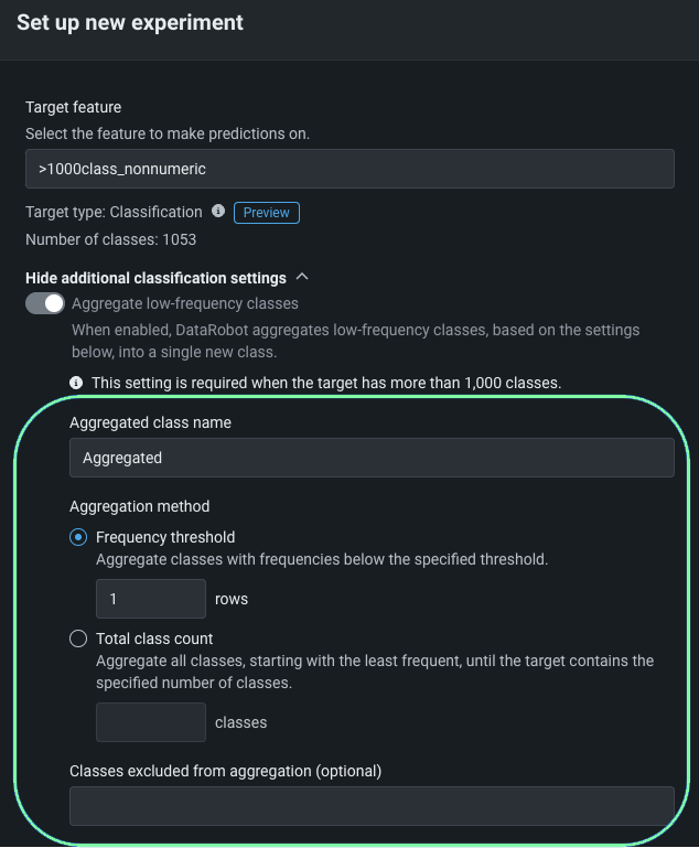 Initially released to Workbench in March 2024, multiclass modeling and the associated confusion matrix are now generally available. To support an expansive set of multiclass modeling experiments—classification problems in which the answer has more than two outcomes—DataRobot provides support for an unlimited number of classes using aggregation.
