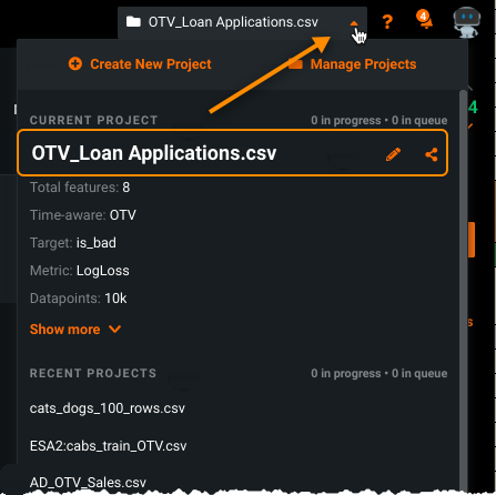 To improve navigation, this release brings a new home for the project sharing and project name editing tools. While still available from the project control center (Manage Projects), you can now more quickly access the tools directly from the project dropdown.