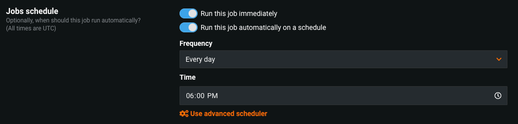 You can now save and run a prediction job immediately when you create the job description rather than locating it on the Job Definitions tab and running it from there.
