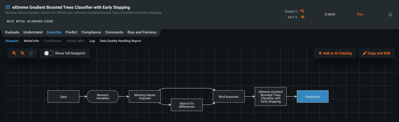 However, the original modeling algorithm often contains many more “branches,” which DataRobot prunes when they are not applicable to the project data and feature list. Now, you can toggle to see a detailed view while in read-only mode. Prior to the introduction of this feature, viewing the full blueprint required entering edit mode of the blueprint editor.