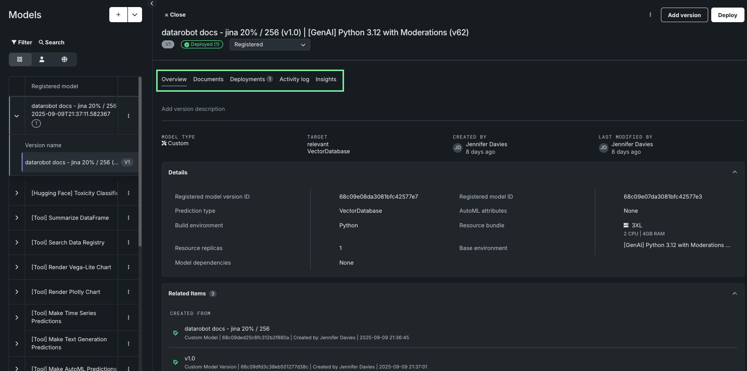 From the list of versions, click the Scoring Code enabled version you want to deploy, opening the registered model version panel.